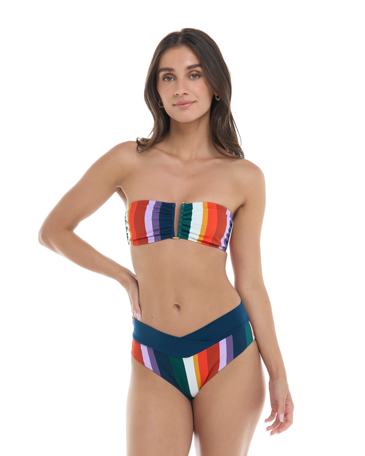 Give your silhouette the royal treatment with Rachel, a high-waisted bottom with a high-cut leg and comfy wide waistband but this time, with a twist! We have updated the Rachel with a criss-cross front. This piece still provides mid coverage around back, so you can stay carefree from sun-up ’til sundown.